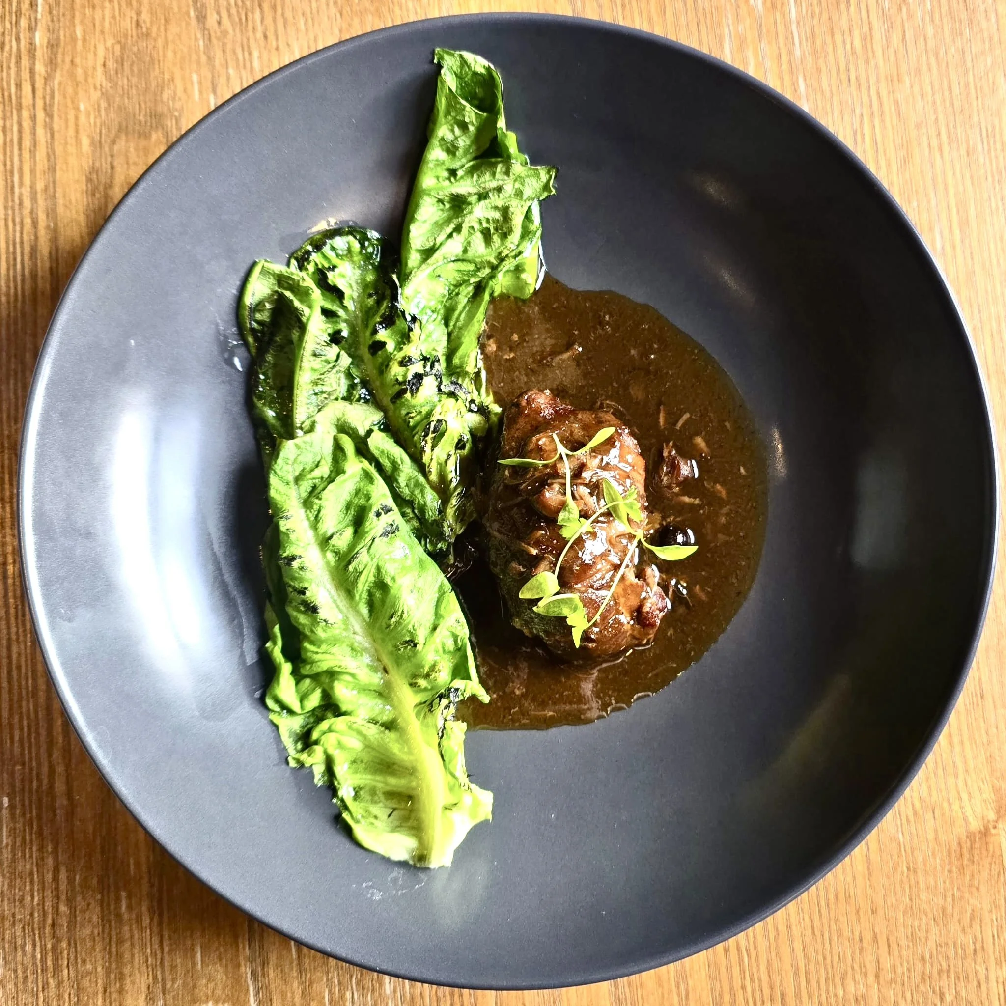 Built around what’s available and best right now — from pork cheeks (pictured below), clams with garlic and white wine or Highland venison, to Isle of Mull scallops and our house burger cooked over flame.